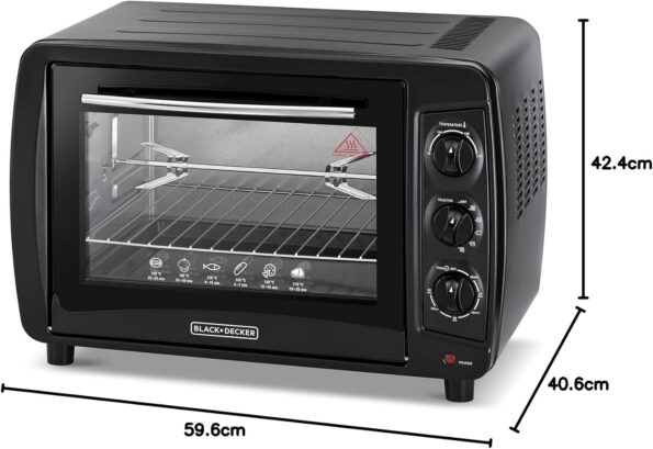 Black+Decker 1500W 35L Toaster Oven With 90-230° Temp Setting, Double Grill And Double Glass Door For Safety With Multiple Accessories, For Toasting Baking Broiling TRO35RDG-B5