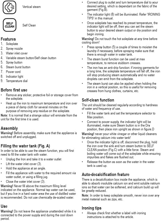 - 1600W Powered Steam Iron