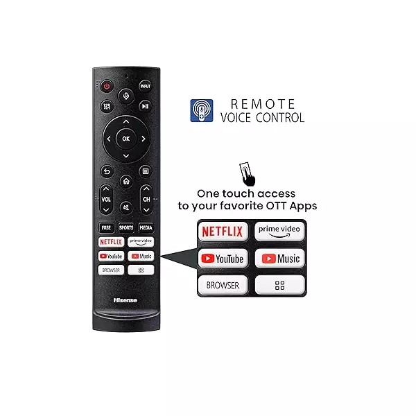 - Remote Control Description: One Click voice remote | Hotkeys for quick access