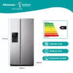 Hisense Refrigerator 474L Side by Side Door, Water Dispenser, Ice Maker, No Frost, Multi AirfLow, Touch Electronic Control, LED Lighting, Water Tank, Super Freeze, Stainless Steel H690SS-IDL