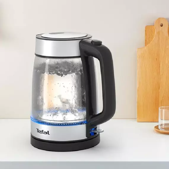 For perfect boiling in an elegant design, the Tefal Glass Kettle is soon to be your new go-to companion for teatime and coffee breaks like no other. With a 1.7 L capacity offering enough for any occasion, discover the ideal electric kettle for savoring precious moments with friends and family. A full range of features including a removable anti-scale filter, precision spout and more, come together in a stylish transparent design made from high-quality heat-resistant glass, with stylish blue ambient lighting when heating water.
